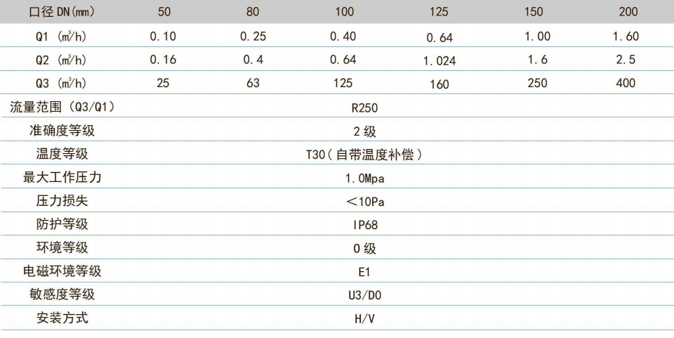 2. 量程比寬,始動(dòng)流量小于0.01m³/h。