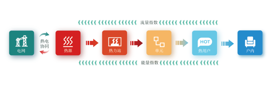 傳統(tǒng)的供熱系統(tǒng)是以“能源生產(chǎn)為導(dǎo)向”,熱源側(cè)保持供應(yīng)總量,用戶(hù)側(cè)分?jǐn)偟?ldquo;推動(dòng)式”供熱。新型“源-網(wǎng)-站-戶(hù)”全域協(xié)同的供熱模式是以“負(fù)荷需求為導(dǎo)向”,根據(jù)實(shí)際需求生產(chǎn)的熱量的“拉動(dòng)式”供熱。利用新一代信息化技術(shù),將水力平衡和熱力平衡的調(diào)控需求歸一為各個(gè)層級(jí)的標(biāo)準(zhǔn)流量指數(shù)和能量指數(shù),按“戶(hù)內(nèi)-熱用戶(hù)-單元-換熱站-熱源”的順序逐級(jí)依次向上傳遞,能量逐級(jí)向下精準(zhǔn)配送,進(jìn)而實(shí)現(xiàn)包括“熱電協(xié)同”在內(nèi)的“源-網(wǎng)-站-戶(hù)”全域協(xié)同。