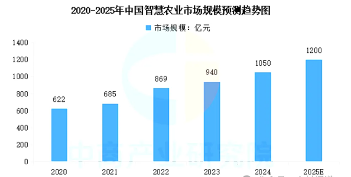 在全球智慧農業(yè)市場的快速增長中,中國也扮演著重要角色。中國作為農業(yè)大國,對智慧農業(yè)技術的需求和應用尤為迫切。政府和企業(yè)紛紛加大投入,推動智慧農業(yè)技術的研發(fā)和應用。【鄉(xiāng)村聞道】認為智慧農業(yè)市場規(guī)模連年增長,2024年中國智慧農業(yè)市場規(guī)模超千億元,達到約1050億元,預計2025年將達到1200億元。